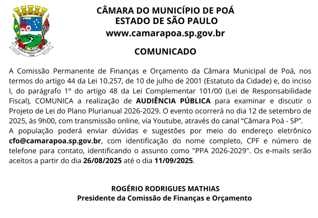 Audiência Pública PPA 2026-2029